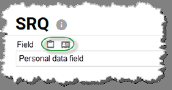 Similar agreements can be presented when you open specific forms or even when you click on some fields to enter data, depending on how the system owner set the system. The image shows a field where icons give access to agreement and personal data information.