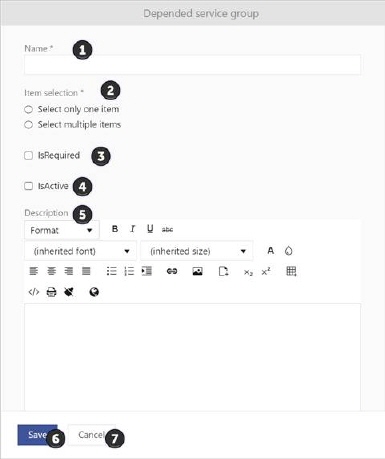 Use Save (6) button to save settings or Cancel (7) to cancel adding of new depended group