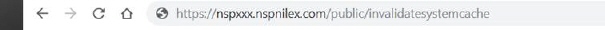 https://”url to NSP Agent portal”/public/invalidatesystemcache