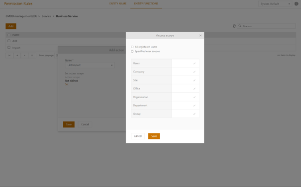 This feature allows you to set the access scope for specific entities, users and actions, such as Add, Export, Import, etc. Currently, the setting can only be applied to the agent portal and for this specific list of entities and related actions: