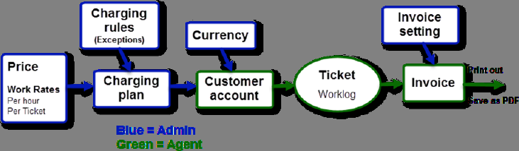 •For charging on a Ticket either as priced per Ticket or per hour via Work log