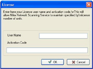If NNS service has yet not been started you will receive a question if you want to start it. Thereupon a license entry dialog will display. Fill in the license information that you received from Nilex. NNS is now ready to be administered though the NNS console.