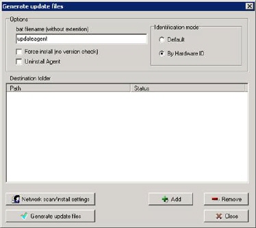 Open menu “Network units” and select “Generate update files”.Click on Add-button to set a directory where to put the files. Then click Generate update files.