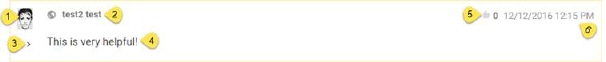 Each item in the comment list contains various fields. All the fields in the comment item are labeled in the below figure and explained in the list:
