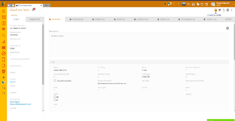 Panel of the form contains general information respectively the default properties of CI. All fields shown in panel is non-editable. When you click the fields: Product, Vendor, Used by or Managed by a popup shows information about selected property.
