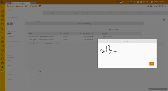 Entity locks history: Detail