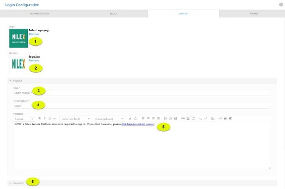 In Content section of the Login Configuration you can customize content of some of the UI elements of the Login page.