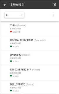 Tap on the Browse CI in the CMDB Main Page opens a page showing a list of the CIs. Each part of the list contains a CI that includes: CI Name CI Type: Type displayed in brackets. CI Id: Unique id for the CI. Status: A label with colored background. Above the list is a List Header section that contains Filter by Type dropdown. Tap that dropdown will open the screen where a CI Type can be selected. When typ is selected, list will be filtered to display CIs of the selected type and its subtypes. Page controls for the displayed list are located at the end of the list. Tap a CI in the list to open its Detail page. |
