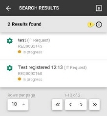 You can see the number of tickets found based on the selected search criteria. Selected criteria can be displayed by tapping the Info icon (1) in the top right conrner. Tap an area outside the menu to close the criteria form. Paging features are available below the list similar to other lists. You can select to show 5, 10, 20 or 50 items per page. If the list contains more than selected number, only first page is displyed initially. |