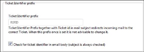 Check for ticket identifier in email body (subject is always checked): If this checkbox is enabled the system will search for the identifier prefix in both the email subject and body text. If not enabled system search for prefix only in email subject.