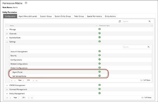 In Configuration tab you define access permission for different parts of Configuration functions (e g Manage, Channels, Business Rules, Settings, CMDB, Contracts and Entities Management) should be available for users assigned to the current selected role.