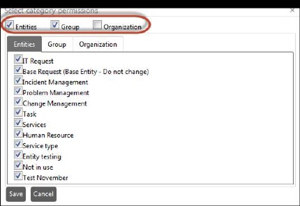 New checkboxes added in Category Permissions settings used to select/unselect all Entities, Groups and Organizations respective.