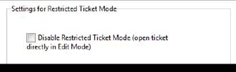 Disable Restricted Ticket Mode (open ticket directly in Edit Mode): If checked, full Edit Mode will be opened directly when you click a ticket in Dashboard or a Ticket View.