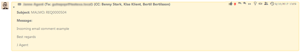 Incoming email comment now in the header includes sender of email, recipient email address and CC recipients: