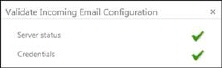 Validate incoming email configuration: Validate that data setup for incoming email account is correct. Validation result is displayed in a popup:
