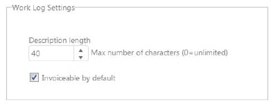 Description length: Define the maximum no of characters in a Work Log Description. This setting can be used e g if work logs should be exported to external system having a limitation in text length for description. Value=0 means that maximum no of characters is unlimited. When work log is added user get a message when trying to input a description that exceed the maximum no of characters. User must remove characters to be able to save the work log.