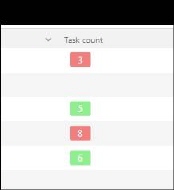 Task Count is a column that is selectable for ticket views. The value is no of tasks connected to the ticket (if there is tasks connected, if not value is blank). If all tasks are completed the value is written in a green square. If at least one of the tasks is not finished value is written in a red square: