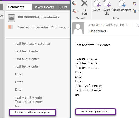 Text from incoming mail that creates a new ticket (ticket description) or comment on existing ticket will be formatted like: