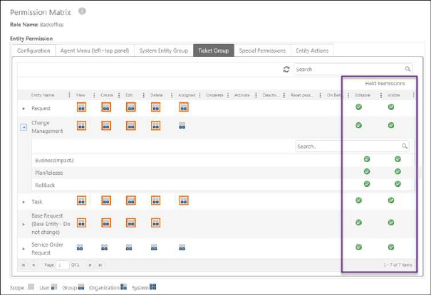 Permission Matrix, tab Ticket Group with all field permissions enabled