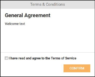 However, also if you disable GDPR there is a message box shown first time an End User logs in to Self Service Portal. In this box the terms shall be confirmed. The text shown in the message is text configured for General Agreement in GDPR. If GDPR is disabled you can change this text to a general welcome message.