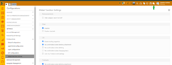 To enable the feature, go to Configurations > Settings > Global function settings > Chat and mark Enabled (*make sure to save and refresh the page to apply settings).