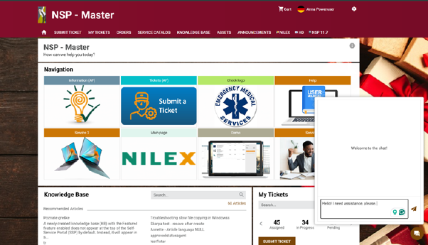 To start chatting on the SSP, simply click the chat bubble to open the pop-up window and start typing. When you are done, click the send arrow on the right. Your message will be forwarded to all the agents within your organization.