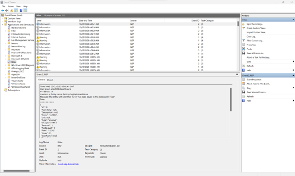 Once everything is set up, right click on the windows icon in the taskbar, and open Event Viewer. Your logs for set actions will be listed in the Applications and Services Logs/Nilex: