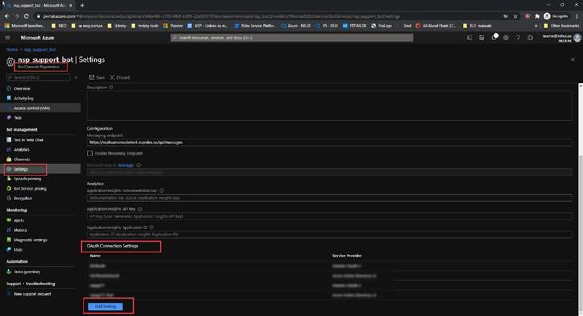 Open Bot Channel Registration page and choose Settings, scroll down to find OAuth Connection Settings and click Add Settings
