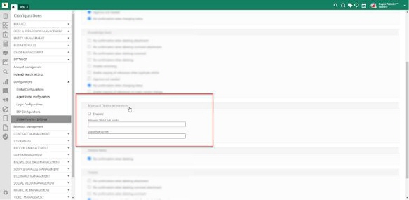 NSP - Global Function Settings – Enable Microsoft Teams integration