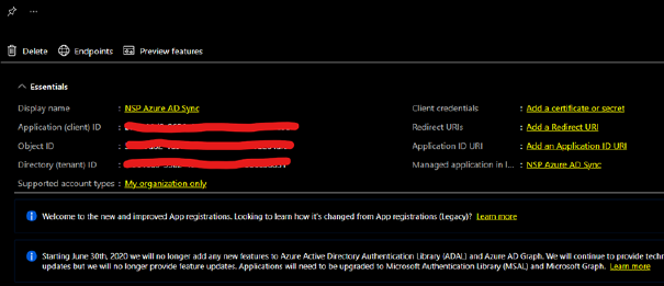 Application ID and Tenant ID and save for later use in NSP Azure AD