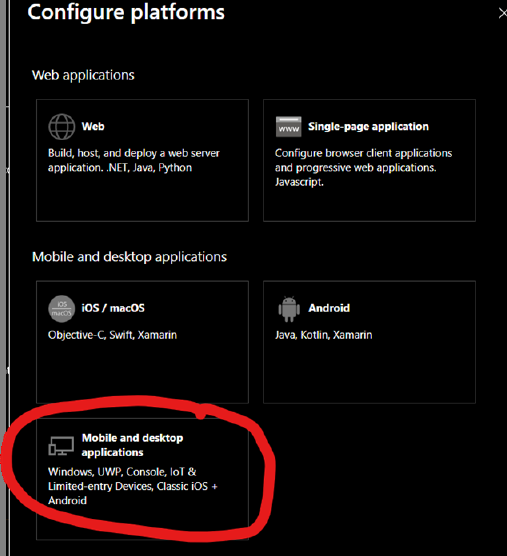 Click on ”Mobile and desktop applications”