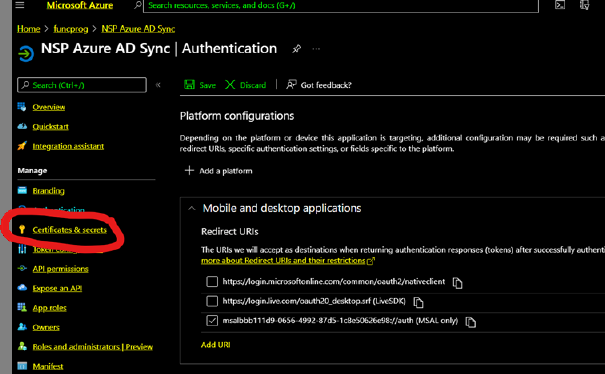 Click on "Certificates and secrets".