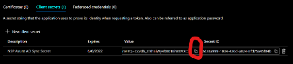 Copy Value and save for later use in "NSP Azure AD Sync"