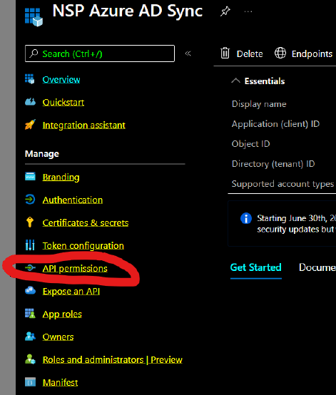 Click on ”API permissions”.