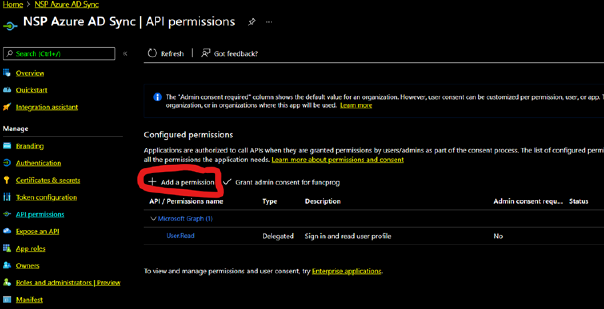 Click on ”Add a permission”