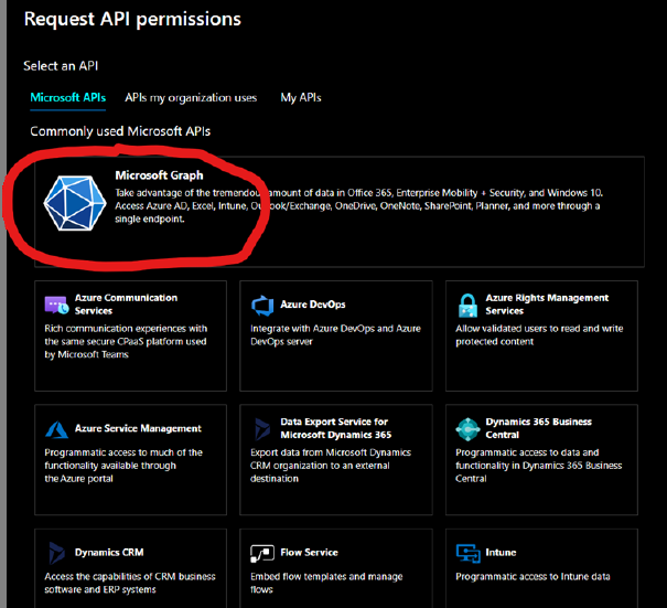 Click on ”Microsoft Graph”.