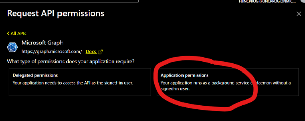 Click on” Application permissions”.
