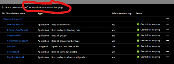 Click "Grant admin consent for XXX" and click Yes in the
