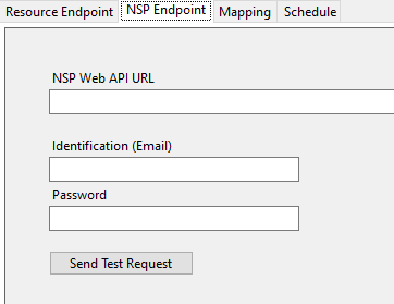 3. On tab “NSP Endpoint” the NSP Web API endpoint and the user credentials to obtain a bearer token. Click “Send Test Request” to verify the settings: