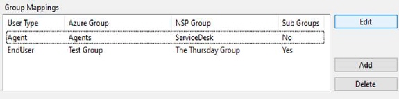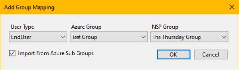 Click tab “Mapping”. Map Azure group with NSP groups, and select user type and whether Azure sub groups should be included in the import.