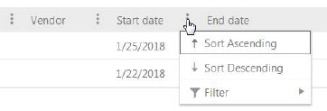 Other way to sorting and apply filtering is use of column menu. The column menu is same for all lists. To open column menu, click three dots icon available rightmost for each column.