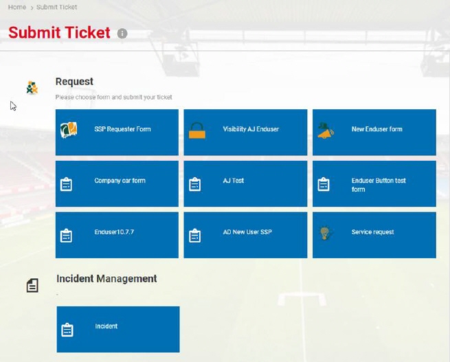 In the Submit Ticket feature, different types of forms could be used based on type of ticket.