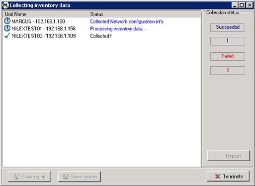 Here you can see the status on collect. The status texts Processing inventory data and Sending Inventory report mean that the agent is creating and sending a file to Inventory Service, which in turn receive and save it to database.
