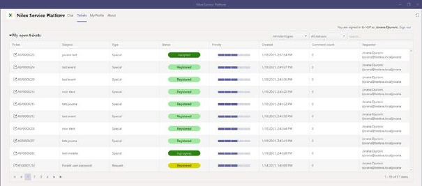 After clicking on Tickets tab in Microsoft Teams app, there will be shown list of all tickets requested by you.