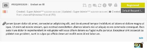 Below the description text there are thumbnail for attached files. Click it to open the attached file. Each thumbnail icon could have a x button, used for delete the attachment (delete option is controlled by system permissions).