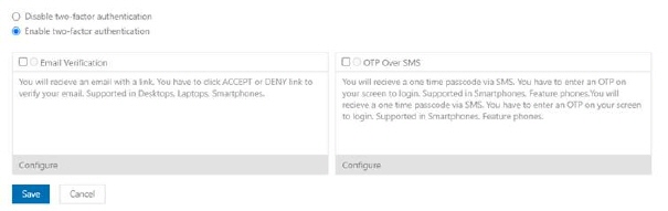 •Disable two-factor authentication – select this radio button if you want to disable 2FA