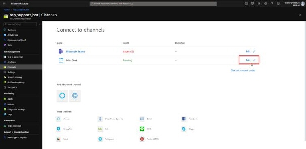 Click on EDIT action rightmost the Web Chat channel