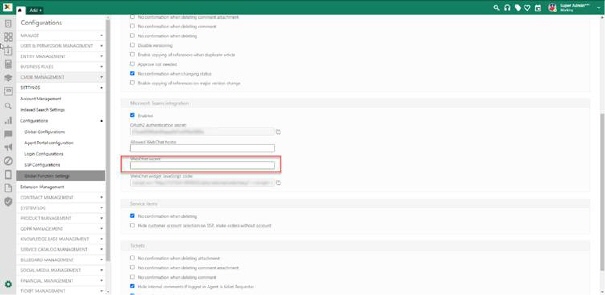 NSP - Global Function Settings – Add Web Chat secret